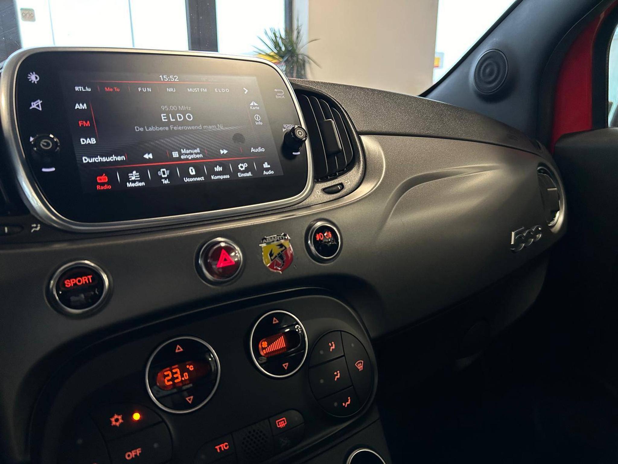 À l’intérieur, l’Abarth propose un habitacle pensé pour la conduite sportive. Le poste de conduite intègre un volant sport, des sièges baquets et des commandes accessibles, offrant une prise en main rapide. Les matériaux de qualité et les finitions soignées apportent confort et modernité. L’écran central permet de gérer facilement la navigation, le multimédia et la connectivité smartphone, tout en restant orienté vers le conducteur pour plus de réactivité.