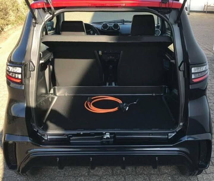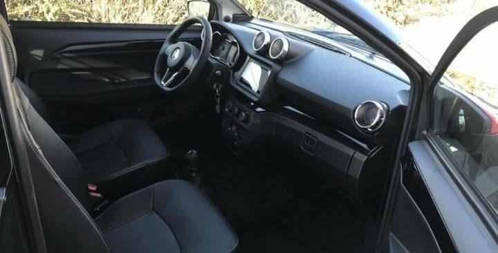 | Équipement intérieur de série | Compartiment de rangement dans les portes et le tableau de bord côté conducteur, ciel de toit en tissu, cache-bagages et butée de bagages, poignée de maintien côté conducteur et passager, boîte à gants avec porte-monnaie et porte-gobelet, éclairage intérieur à LED avec temporisation, tapis de coffre en tissu, appuis-tête réglables, bouches d’aération réglables, compartiment pour téléphone portable, rétroviseur anti-éblouissement, ceintures de sécurité automatiques, dossiers des sièges réglables, sièges en similicuir noir, garniture de cadre de siège, pare-soleil avec miroir pour passager |