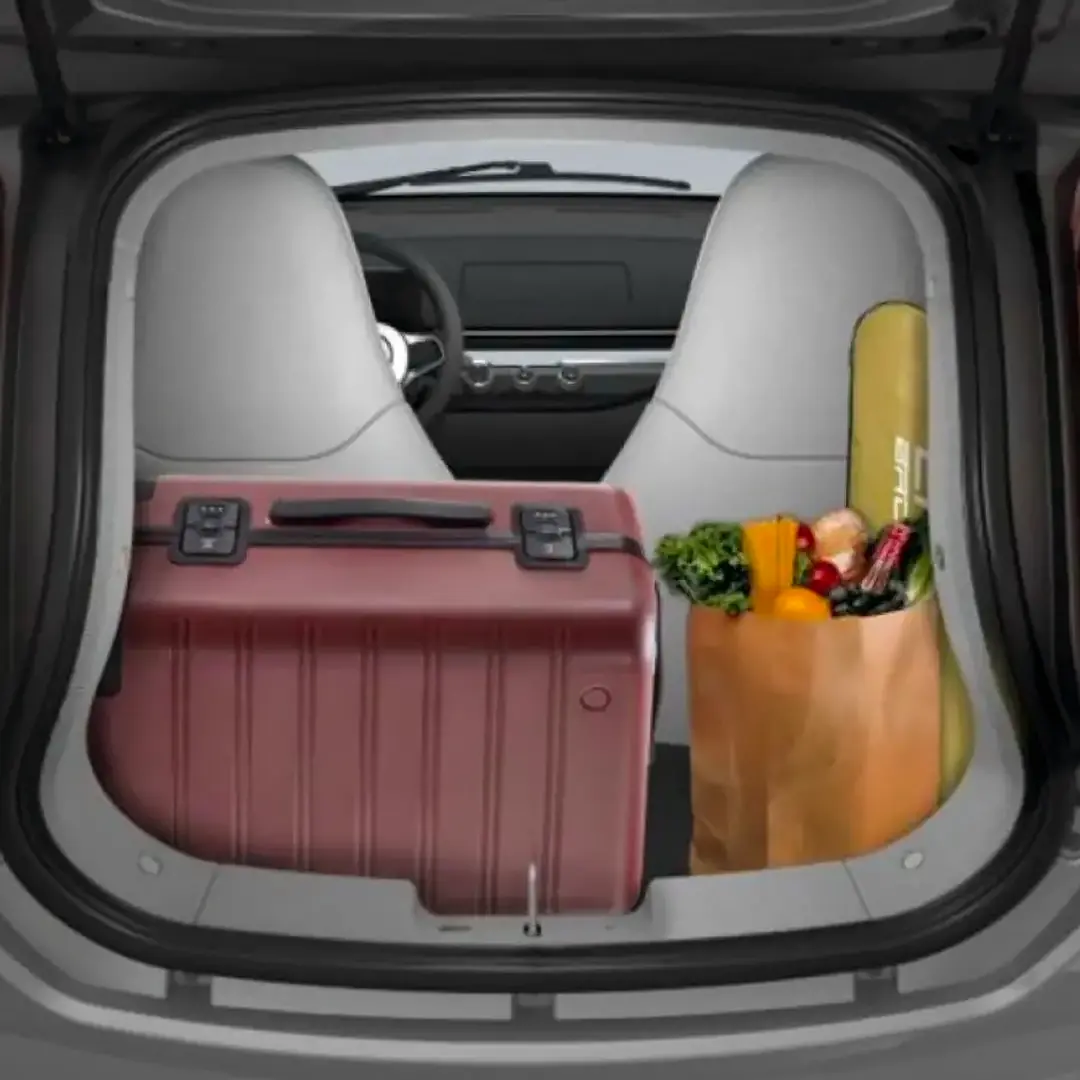 Elle offre deux places confortables et un coffre de 160 litres, suffisant pour les courses quotidiennes.