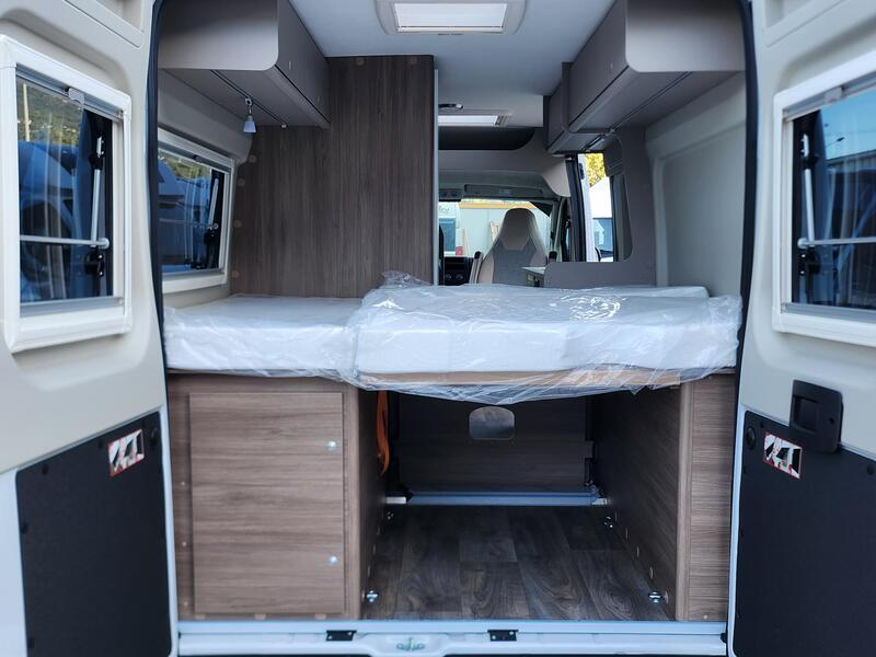 Le fourgon Carado CV 600 propose deux couchages confortables, idéals pour les couples. Le lit principal assure un excellent confort grâce à un matelas de qualité et un sommier robuste.