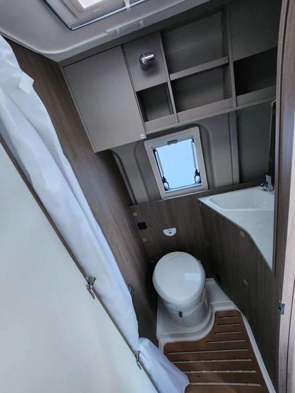Malgré son gabarit compact, le CV 600 intègre une salle d’eau bien conçue et ergonomique. Elle comprend une douche, un lavabo et des toilettes, ainsi que des rangements pratiques pour les produits de toilette.