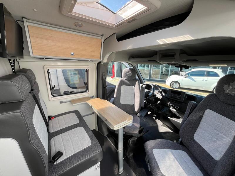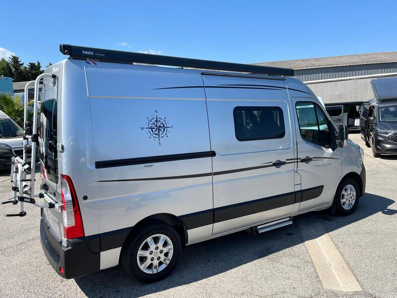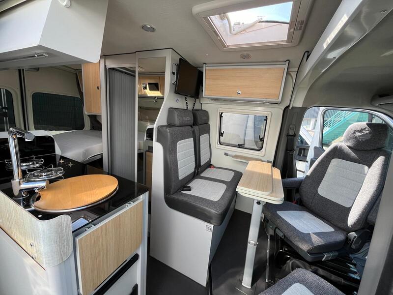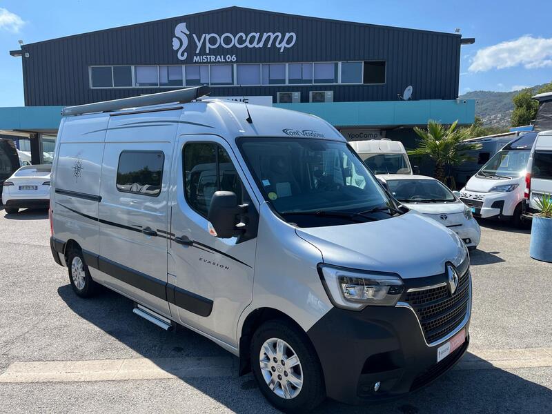 Ce fourgon mesure environ 5,57 m de long, 2,07 m de large et 2,60 m de haut, ce qui le rend compact tout en garantissant un espace intérieur suffisant. Il est généralement équipé d’un moteur diesel Renault Master de 135 à 150 chevaux, avec boîte manuelle ou automatique selon la version. Il peut accueillir 4 personnes assises et offre jusqu’à 3 couchages, grâce à un agencement bien pensé.
