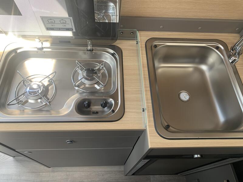 La cuisine du LMC INNOVAN 590 New Edition a été pensée pour allier fonctionnalité et compacité. Le plan de travail permet de cuisiner facilement, même lors de séjours prolongés. Les rangements intégrés facilitent l’organisation des ustensiles et des provisions. Les équipements sélectionnés sont fiables et simples à utiliser. L’éclairage dédié améliore la visibilité et crée une ambiance agréable. Ainsi, cette cuisine répond aux besoins essentiels des voyageurs tout en conservant un espace ordonné et pratique.