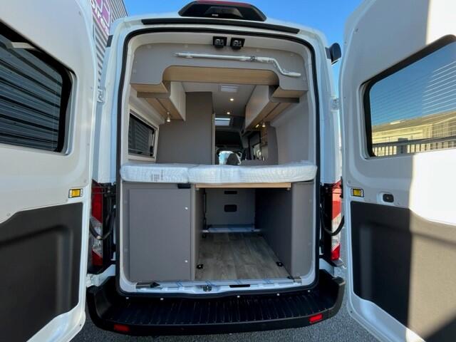 La salle d’eau optimise l’espace tout en offrant un confort d’utilisation maximal. La douche dispose d’un volume suffisant pour un usage quotidien confortable. Les matériaux résistants à l’humidité facilitent l’entretien et assurent une longue durabilité. Autour du lavabo, des rangements pratiques accueillent les produits de toilette et d’hygiène. La ventilation efficace limite l’humidité et maintient un air sain à l’intérieur. Grâce à ces aménagements, la salle d’eau devient pratique, fonctionnelle et agréable pour tous les occupants du fourgon.
