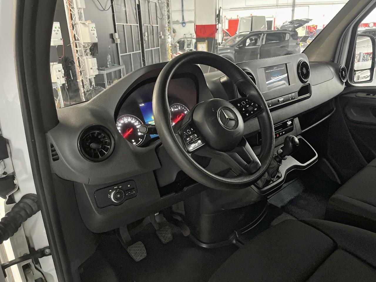 Le Sprinter intègre des équipements modernes pour améliorer le confort de conduite et la sécurité. Le système multimédia avec écran tactile offre la connectivité Apple CarPlay et Android Auto. Les aides à la conduite, comme l’alerte de franchissement de ligne, l’assistant de maintien de voie, le freinage actif d’urgence ou l’aide au stationnement, contribuent à réduire la fatigue du conducteur et à sécuriser les trajets, même sur de longs parcours. Ces technologies se révèlent particulièrement utiles dans un usage professionnel quotidien.