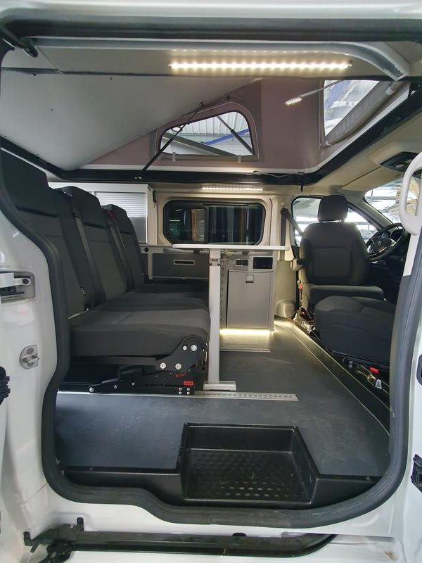 L’accès à bord du van AUTOCAMP a été pensé pour simplifier la vie quotidienne. La porte latérale coulissante facilite l’entrée et la sortie, même dans des espaces restreints. À l’intérieur, l’agencement est clair et fonctionnel, favorisant une circulation fluide. Les zones de vie sont bien délimitées, ce qui permet de se déplacer facilement à bord. Grâce à cette organisation, les occupants profitent d’un espace intérieur ergonomique et agréable.
